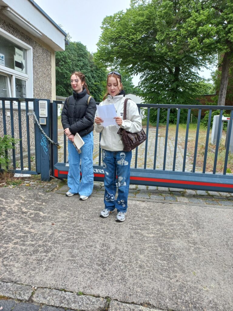 Zuerst unternahmen wir eine kleine Wanderung bis zum Minsk. Dort hörten wir dann einen Vortrag von Sena und Riad zum Thema Jugendtreff in der DDR-Zeit. Leider konnten wir nicht ins Minsk reingehen und mussten den Vortrag von draussen hören. Als der Vortrag zu Ende war, spazierten wir einmal ums Gebäude und dann gings weiter in Richtung Roter Kreml.